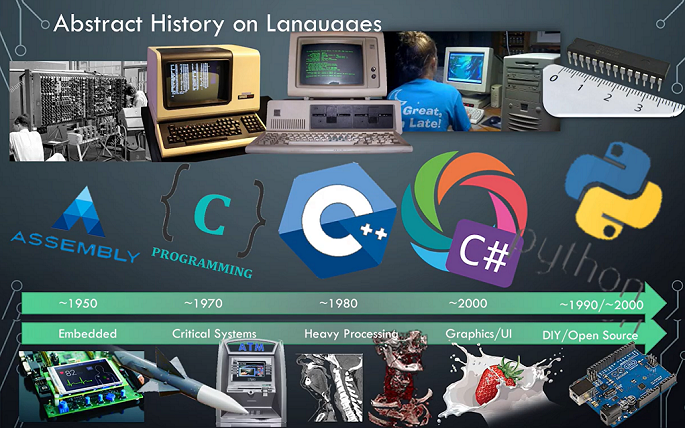 It is clear from the example above that, if it weren’t for the great comments, an extensive cerebral dictionary is required to review this code. While this low-level functionality can be packaged into functions in Assembly, and therefore libraries, advances in computing capabilities enabled the evolution of a computer program that packages higher-level code into condensed machine code that almost rivals the efficiency of Assembly. This advancement is the birth of the modern compiler. Further advances in the compiler meant that the developers mind can be unleashed to make very complicated programs, such as operating systems. Over this period of incremental advancement, many new languages popped up, COBAL, FORTRAN, BASIC, to name a few. But it was the C programming language that stood the test of time and is still widely being used today (albeit in highly optimized embedded applications).